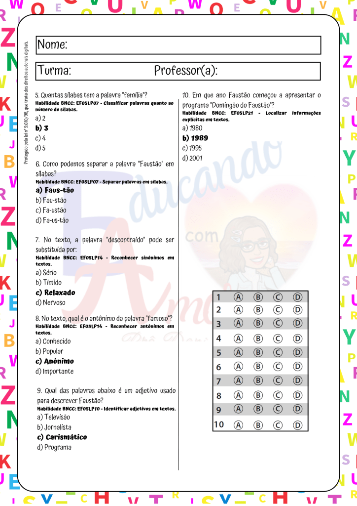 O estudo de biografias permite que os alunos pratiquem uma série de habilidades linguísticas previstas na Base Nacional Comum Curricular (BNCC). Eles aprendem a identificar e interpretar informações explícitas e implícitas nos textos, reconhecem gêneros textuais, trabalham com a organização das ideias, além de explorar aspectos gramaticais, como substantivos, adjetivos e sinônimos. Essas atividades ajudam a solidificar o conhecimento da língua portuguesa de maneira contextualizada e significativa.
